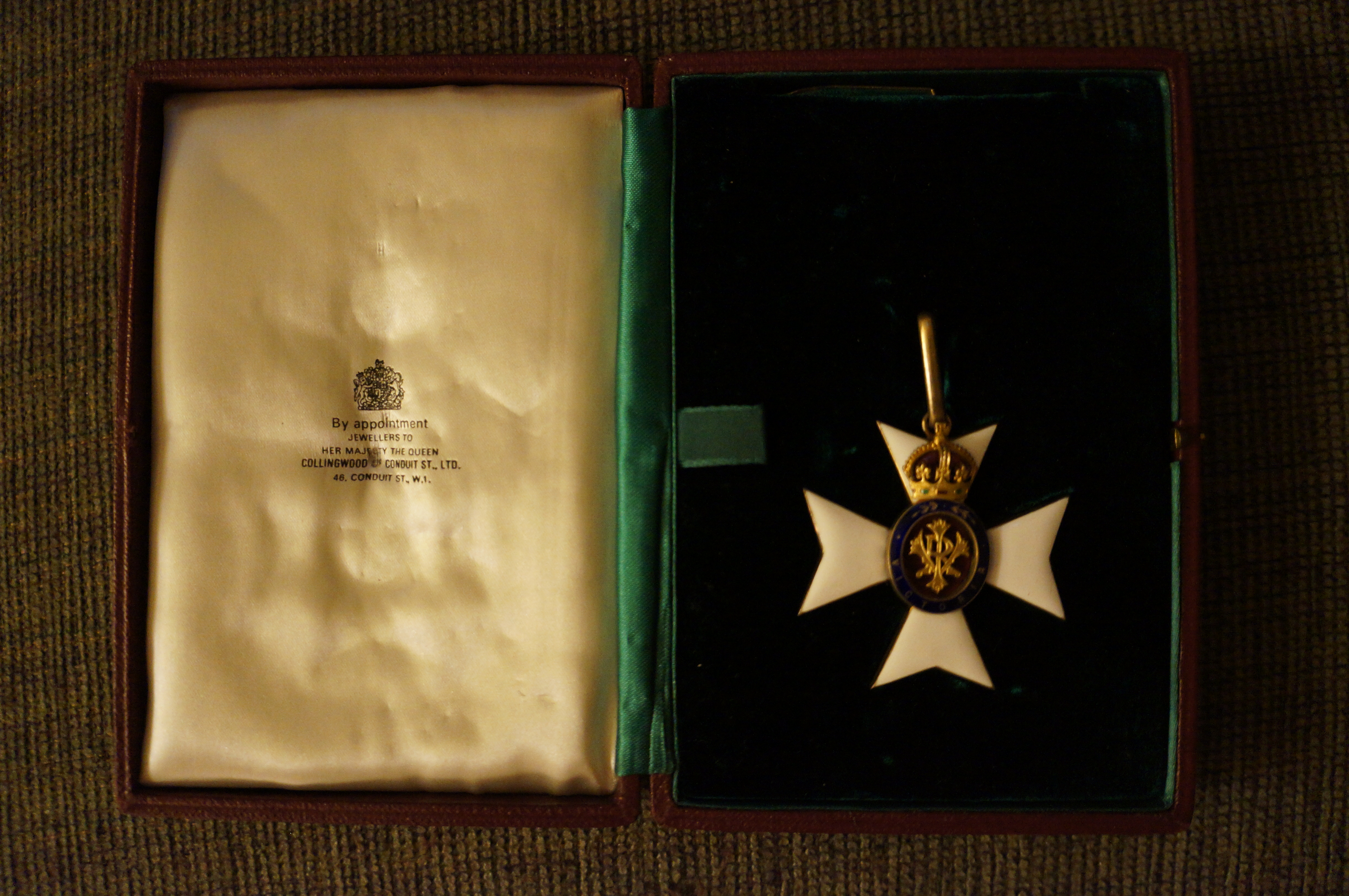 It’s hard to pry much information from my Dad. The fact that I didn’t know about this thing until a month ago is testament to that. My grandfather apparently got it for being the Cultural Affairs Attache for GB. I’m fairly sure he was an Attache with the British Ambassador to Japan. Beyond that I don’t know why he got it, my dad just says “service.” That’s all I’m gonna get. If you have any insights, I’d be more than happy to hear them. It’s a CVO which I think means Commander of the Victorian Order. I also think that means he was not knighted.