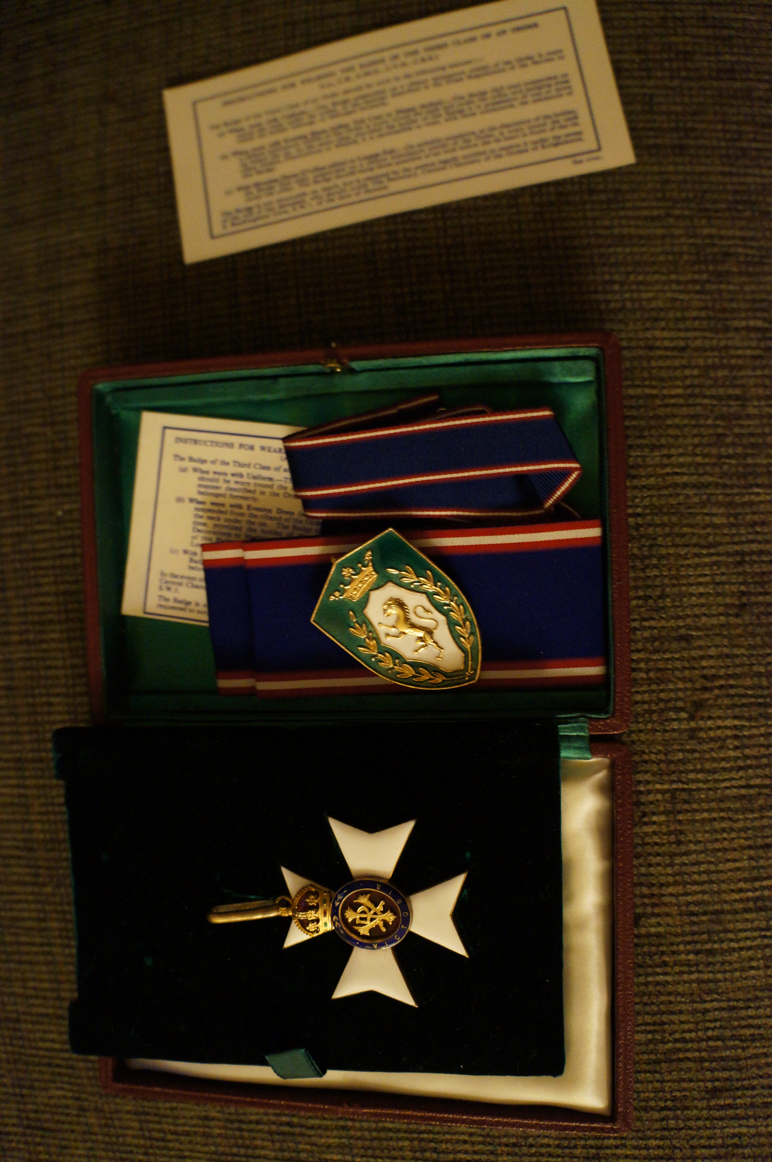 Then there is this green one behind the velvet backing, along with an official strap and instructions on how to wear the medals.