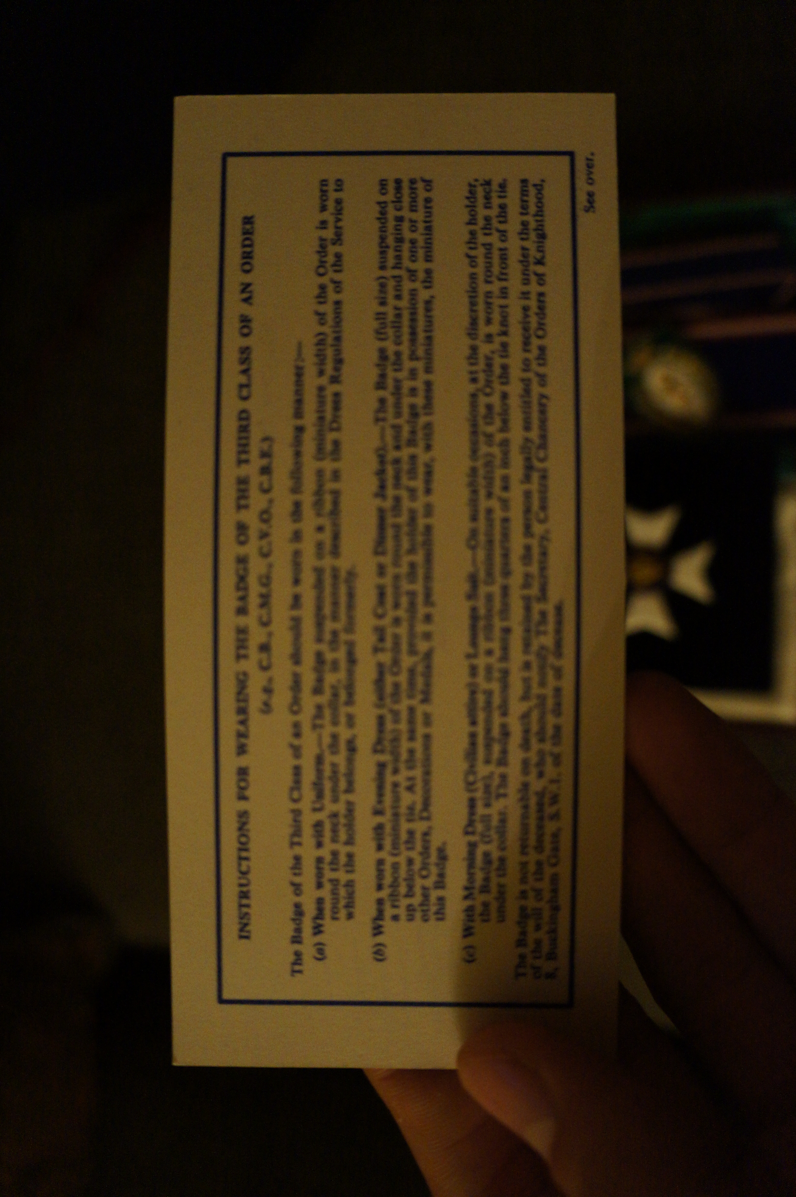 This is a bad picture, but I’m too lazy to upload a better one. If you can’t be bothered to read it it just explains how the medals are meant to be worn, under what circumstances.